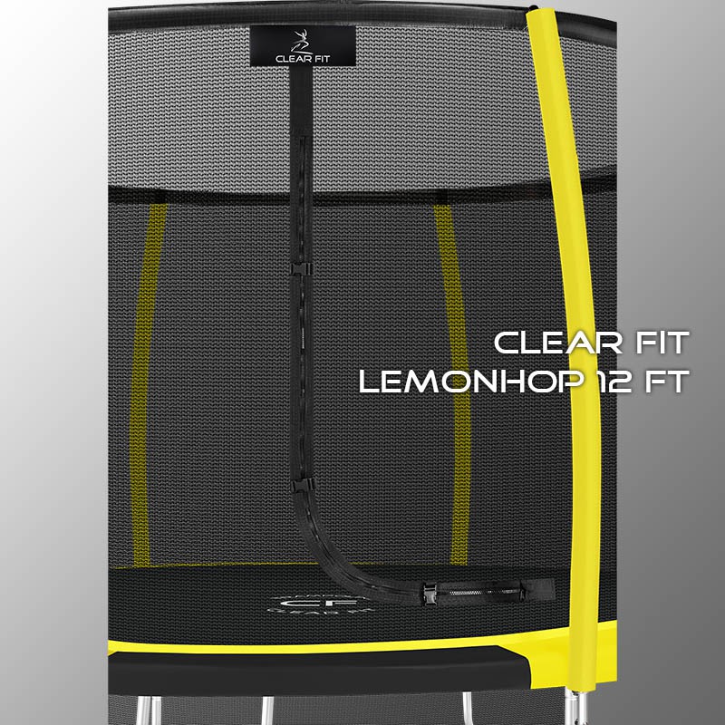 В 2026 году представлена обновленная линейка с улучшенной конструкцией каркаса. Усиление достигнуто за счет использования прочных Т-образных кронштейнов из металла толщиной 1.9 мм. Кроме того, в комплектацию добавлен карман для обуви. Каркасный батут с защитной сеткой Clear Fit серии LemonHop — отличаются комфортом и надежностью. Надежная рама из качественных комплектующих, прочная защитная сеть снабжена прямым креплением к прыжковому полотну и дополнительной защитой входа, наверху каркасное жесткое крепление, сеть не провисает и не слетает во время тренировок. Увлекательный, полезный и безопасный тренажер для всей семьи. Батуты серии LemonHop 10Ft, 12Ft, 14Ft и 16Ft поставляются в оптимальной для комфорта и безопасности комплектации: батут, верхняя защитная сеть, защитный мат, лестница и карман для обуви. Батут размером в 14 футов с прыжковой поверхностью 3.82 м идеально подходит для пользователей любого возраста и комплекции, для детских и подростковых игр, для спортивных тренировок и для фитнеса. Верхняя защитная сеть оберегает от падений, усиленная молния и дополнительная защита входа уберегут малышей от случайного входа или падения. Надежный каркас из оцинкованной стали, качественные комплектующие и погодостойкие гальванизированные метизы рамы делают батут безопасным, устойчивым, надежным, гарантируют полную защиту от коррозии и долгий срок службы. Максимальный вес пользователя батута LemonHop 14Ft — до 250 кг.