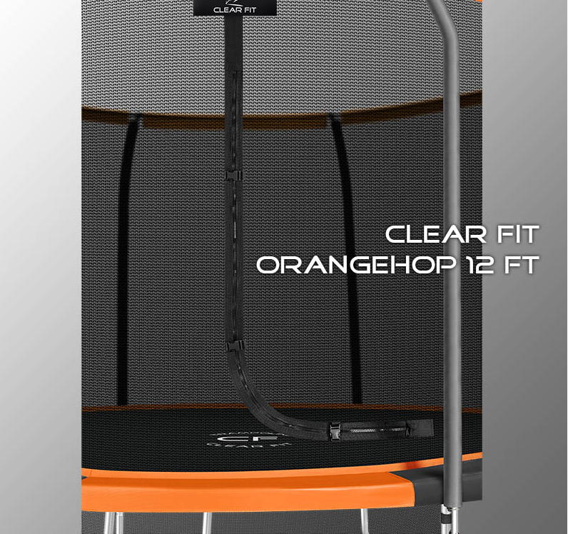 В 2026 году представлена обновленная линейка с улучшенной конструкцией каркаса. Усиление достигнуто за счет использования прочных Т-образных кронштейнов из металла толщиной 1.9 мм. Кроме того, в комплектацию добавлен карман для обуви. Каркасный батут с защитной сеткой Clear Fit серии OrangeHop — отличаются комфортом и надежностью. Надежная рама из качественных комплектующих, прочная защитная сеть снабжена прямым креплением к прыжковому полотну и дополнительной защитой входа, наверху каркасное жесткое крепление, сеть не провисает и не слетает во время тренировок. Увлекательный, полезный и безопасный тренажер для всей семьи. Батуты серии OrangeHop 10Ft, 12Ft, 14Ft и 16Ft поставляются в оптимальной для комфорта и безопасности комплектации: батут, верхняя защитная сеть, защитный мат, лестница и карман для обуви. Батут размером в 12 футов с прыжковой поверхностью 3.21 м идеально подходит для пользователей любого возраста, размеры полотна позволяют комфортно тренироваться взрослым и развлекаться детям, включая подростков. Верхняя защитная сеть оберегает от падений, усиленная молния и дополнительная защита входа уберегут малышей от случайного входа или падения. Надежный каркас из оцинкованной стали, качественные комплектующие и погодостойкие гальванизированные метизы рамы делает батут безопасным, устойчивым, надежным, гарантируют полную защиту от коррозии и долгий срок службы. Максимальный вес пользователя батута OrangeHop 12Ft — до 200 кг.
