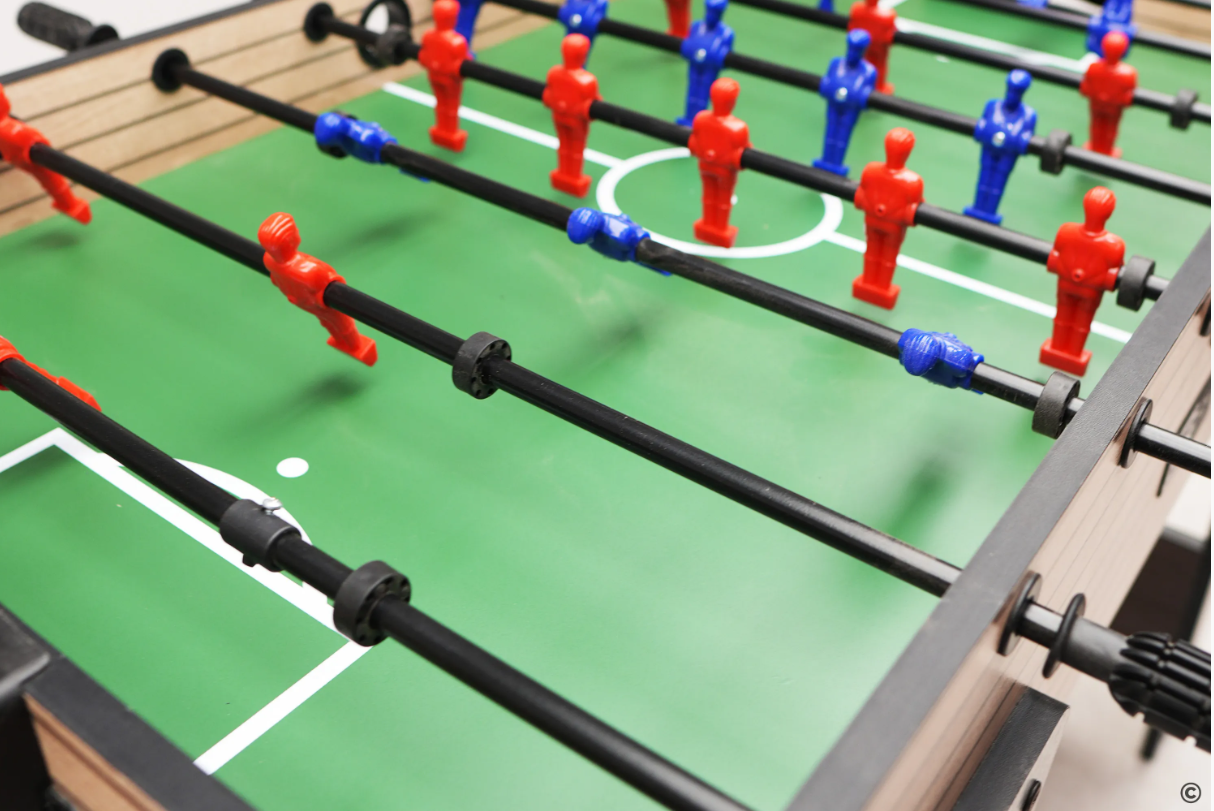- Штанги управления с резиновыми рукоятками вращаются плавно и легко, обеспечивая полный контроль над игроками и точность передач и ударов.