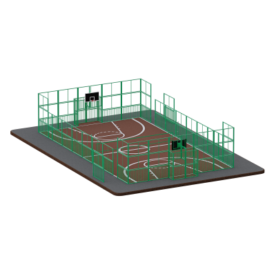 Сетка рабица обеспечивает защиту игровой зоны и при этом сохраняет обзор, что важно для комфортного проведения игр. Интеграция баскетбольных стоек расширяет функциональность комплекса и позволяет использовать его для различных видов спорта.
