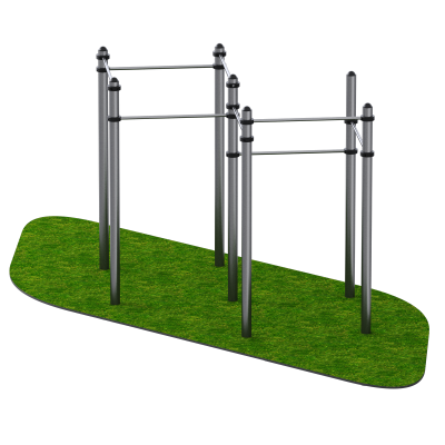 Перекладины выполнены из стальной трубы диаметром 34 мм, что обеспечивает удобный и надёжный хват при выполнении упражнений. Расположение перекладин позволяет использовать тренажёр пользователям разного роста и уровня физической подготовки, включая выполнение упражнений с постепенным увеличением сложности.
