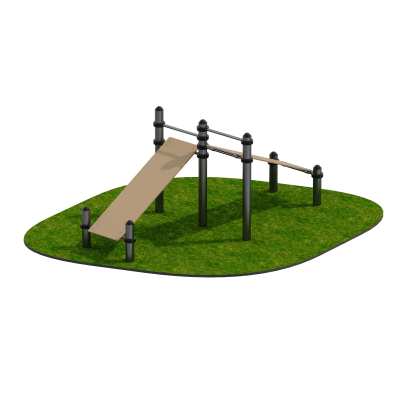 Конструкция выполнена в травмобезопасном и антивандальном исполнении. Металлические элементы покрыты порошковой термоотверждаемой краской, устойчивой к атмосферным воздействиям, ультрафиолету и коррозии. Опоры монтируются на глубину не менее 700 мм, обеспечивая устойчивость и надёжную фиксацию тренажёра.