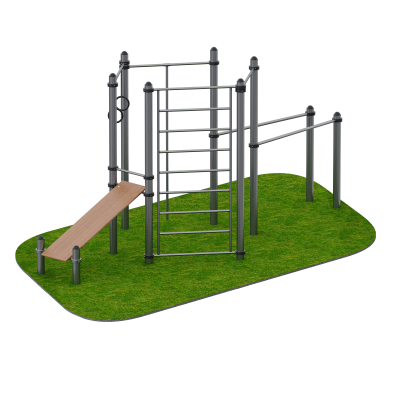 Комплекс способствует развитию силы, выносливости и общей физической подготовки, формируя полноценную тренировочную зону на открытом воздухе.