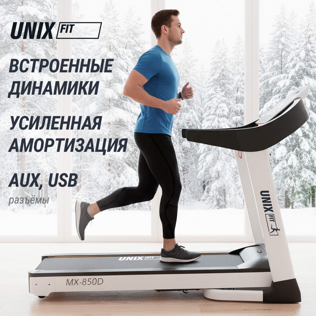 Беговая дорожка UNIX Fit MX-850D — отличный выбор для всех, кто хочет улучшить свою физическую форму, сжечь калории и получить удовольствие от занятий! Каждая тренировка станет следующим шагом к новой версии себя и своего тела! С помощью беговой дорожки для дома UNIX Fit MX-850D вы достигнете поставленных фитнес-целей!
